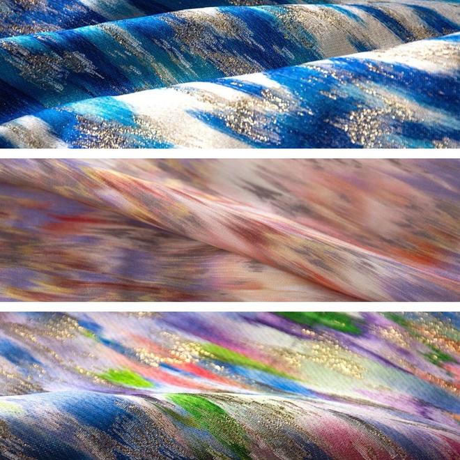 与此同时,新设备在完整保留艾德莱斯“絣”工艺传统的基础上,还能实现将金丝、银线织入面料之中,使得布料更富有层次感与质感。