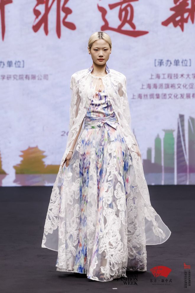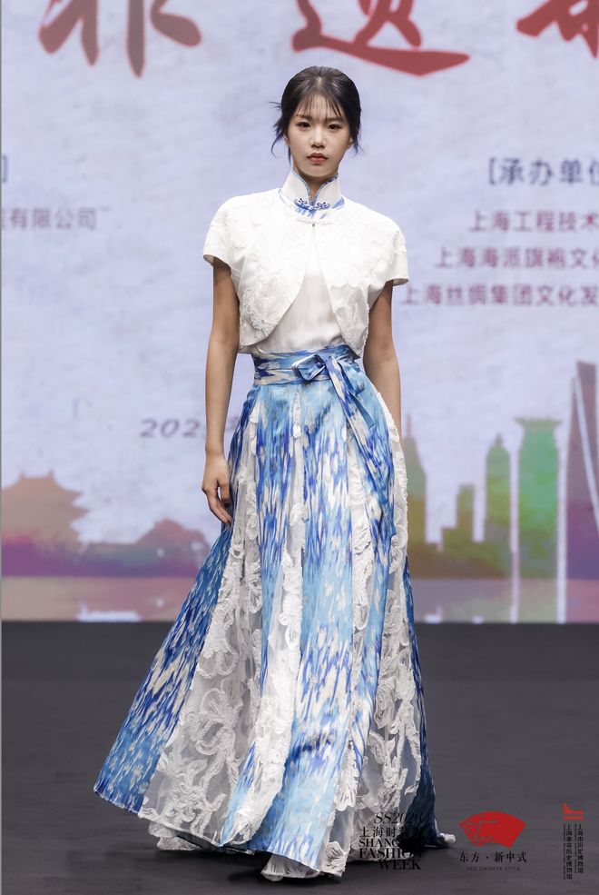 从设计风格上看,此次亮相的艾德莱斯跳出了传统民族服饰的框架,巧妙地融入旗袍、马面裙等新中式款式之中;从色彩上,则汲取海派美学之韵,以明快而不失柔和的低饱和度配色。可以说,元素间的多重碰撞,让古老纹样与时尚找到平衡点。