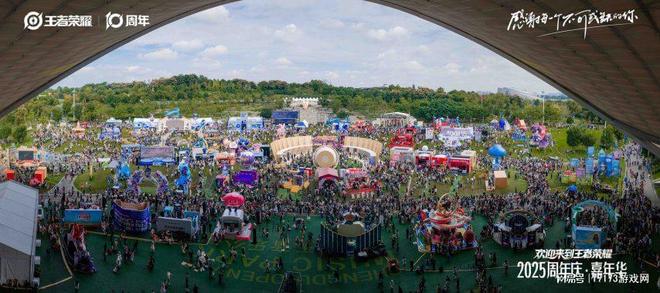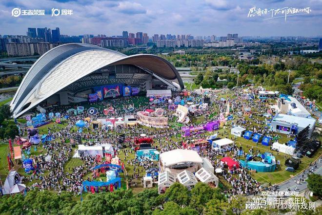 晚会精彩,嘉年华同样热闹。今年,十周年游园会正式升级为首个《王者荣耀》嘉年华,于25、26两天在成都露天音乐公园打造了总面积超过6万平米的超大会场,包含6大主题区域和体验路线万人到场参与现场活动。